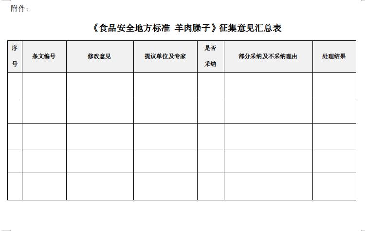 根据《中华人民共和国食品安全法》和《食品安全地方标准制定及备案指南》的规定,自治区卫生健康委组织拟定了《食品安全地方标准 羊肉臊子(征求意见稿)》,现公开征求意见。请于2022年9月8日前将意见反馈至自治区卫生健康委综合监督局。