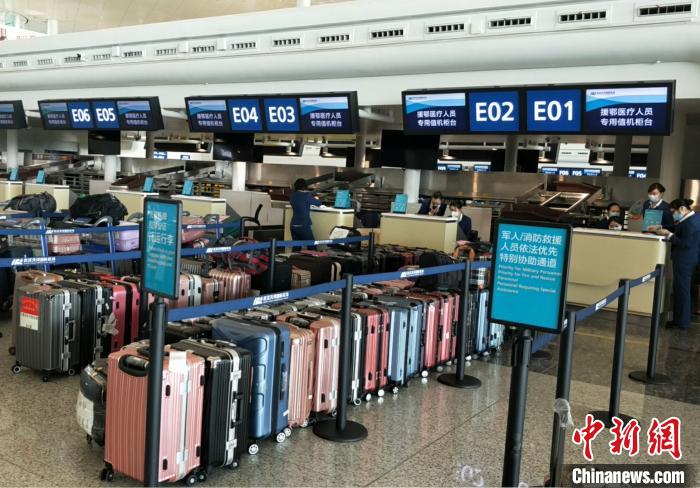 宁夏援湖北医疗队队员的行李正经过安检。宁夏援湖北医疗队供图