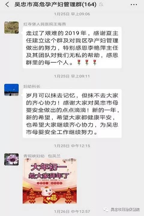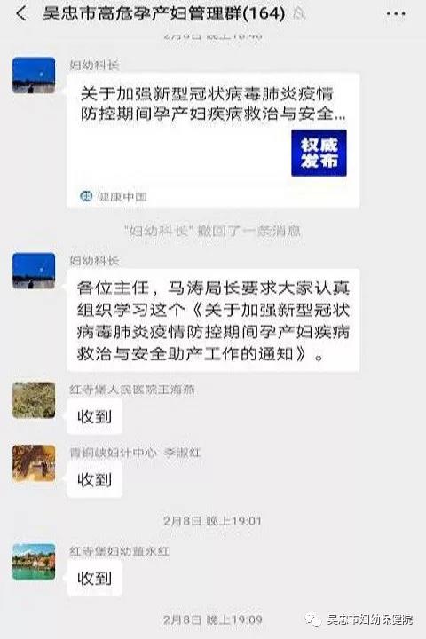 近期,虽然疫情肆虐,但是吴忠市危重孕产妇管理微信群依然发挥着它“蓝天”的作用,疫情期间,大家及时转变工作方式,由线下变为线上,尽可能避免高危孕产妇“暴露”的因素。吴忠市妇幼保健院管理人员及时将妇女儿童防控知识发送到由各县(市、区)妇幼卫生工作人员、吴忠市各医疗保健机构产科主任、吴忠市危重孕产妇急救中心医护人员组成的“吴忠市高危孕产妇管理群”,对群组里上下转的高危孕产妇信息全程跟踪督促,严格要求各级医疗机构在疫情严重的背景下,更要充分做好危重孕产妇的转诊、追踪随访等工作,并针对助产机构《孕产妇健康管理手册》产后信息填写不完整,提出疫情防控在即,保健人员不宜深入产妇家中做产后访视,为了母婴安全及妇幼健康信息的及时上报,只能通过电话及微信传送《孕产妇健康管理手册》图片进行信息的交互。希望各位医护人员在孕产妇分娩后及时完整填写《孕妇健康管理手册》的出生信息,确保母婴信息的及时交互,便于辖区妇幼健康信息的及时上报及辖区母婴安全工作在疫情防控期间不受影响的要求。市孕产妇急救中心及吴忠市妇幼保健院会及时发送产检发现的较严重高危孕产妇信息,希望辖区三级妇幼人员高度重视,严密管理,确保母婴安全。市孕产妇急救中心李艳萍主任会认真总结基层转诊的典型病例救治过程中经验、基层人员在管理中存在的问题及下一步注意事项等信息及时分享至“吴忠市高危孕产妇管理微信群”里,各县(市、区)相关人员认真学习,提出日常工作中存在的问题,并讨论解决,这种PDCA模式的循环,可以有效帮助基层专业人员提高技能。