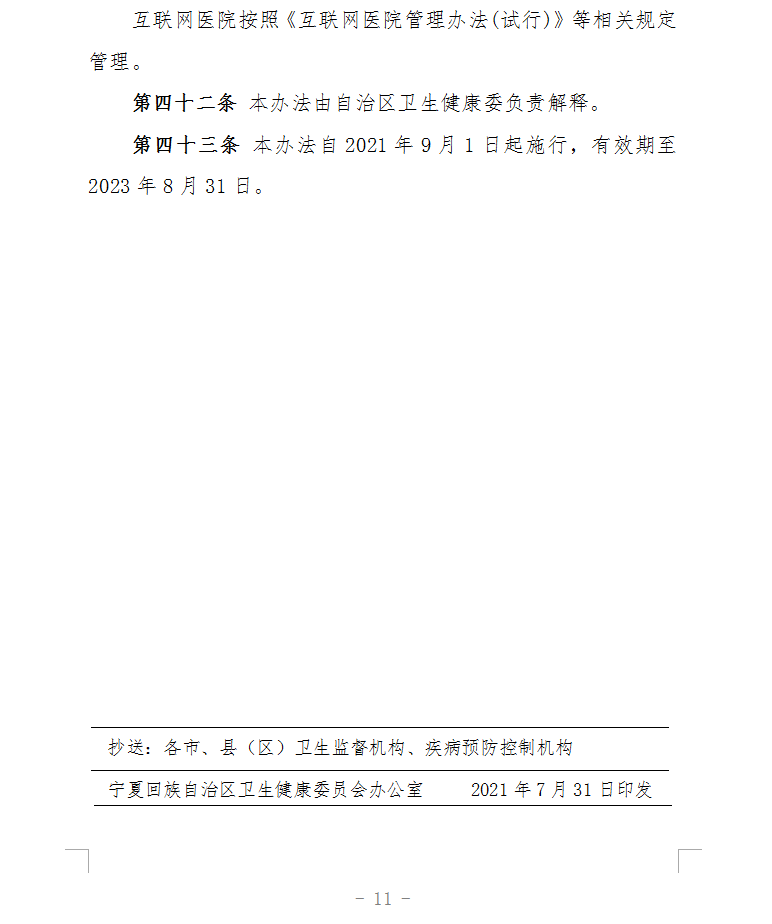 自治区卫生健康委员会关于印发 《宁夏回族自治区互联网诊疗监督管理办法(试行)》的通知