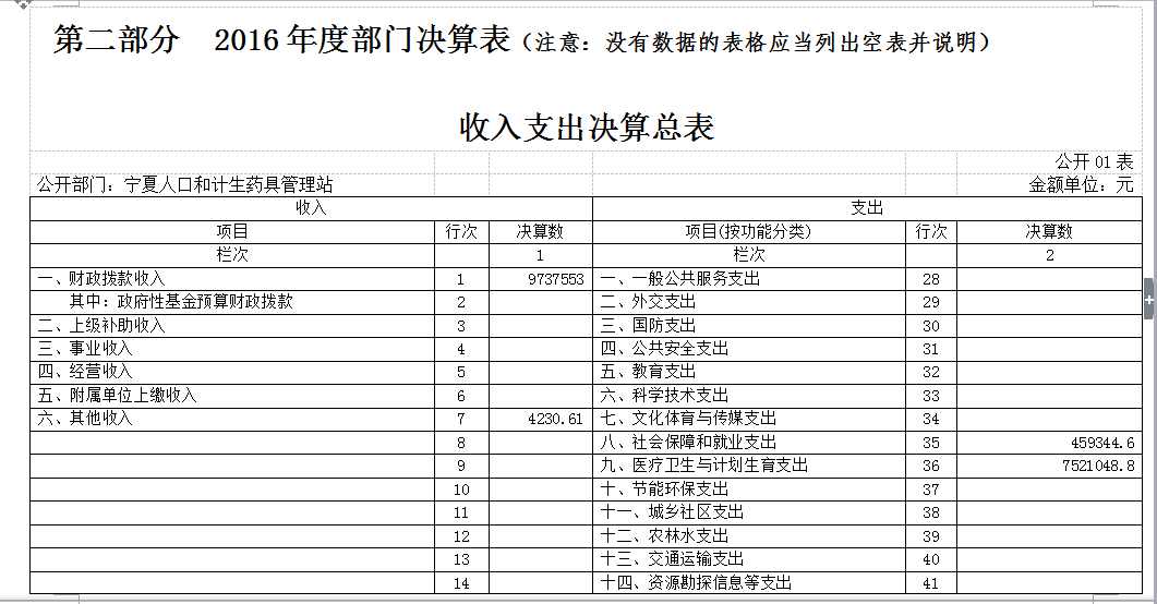 第二部分 2016年度部门决算表