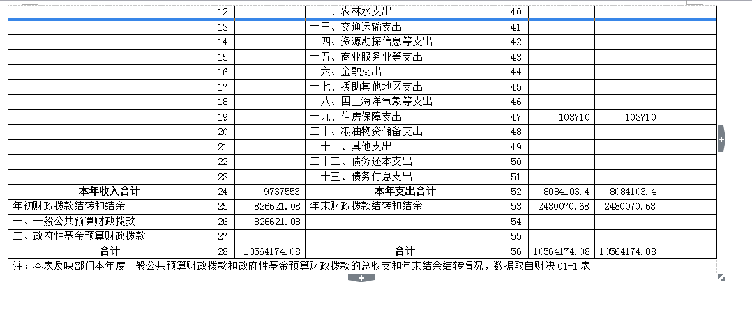 四、财政拨款收入支出决算总表