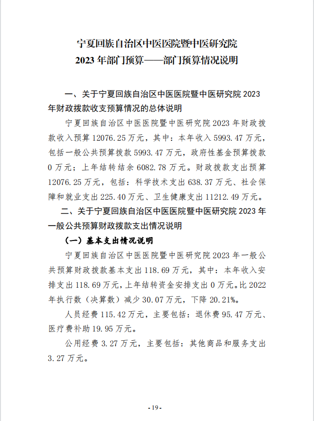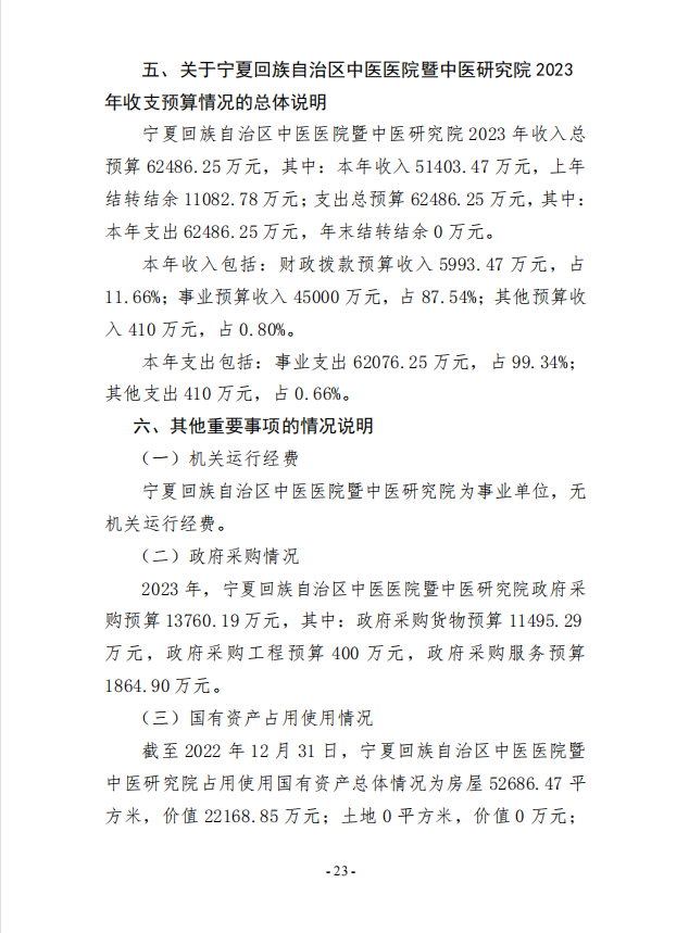 宁夏回族自治区中医医院暨中医研究院2023年部门预算