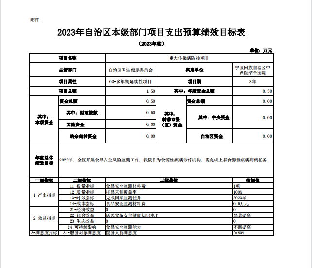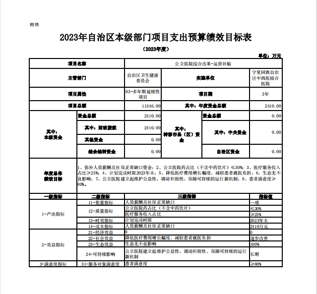 宁夏回族自治区中西医结合医院2023年自治区本级部门项目支出预算绩效目标