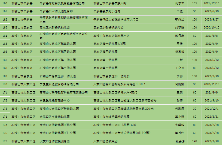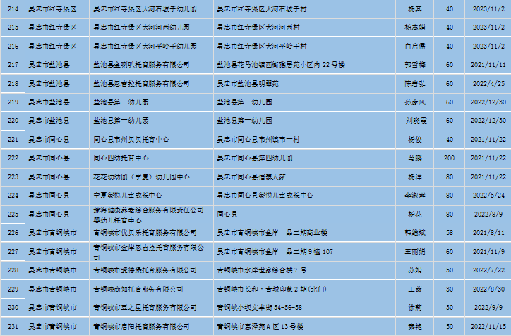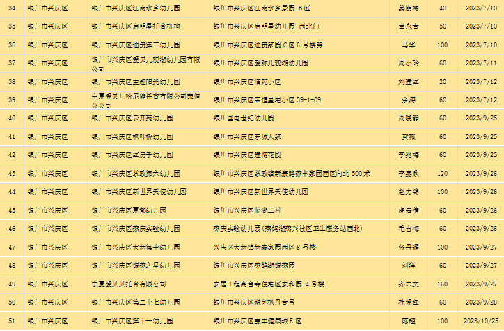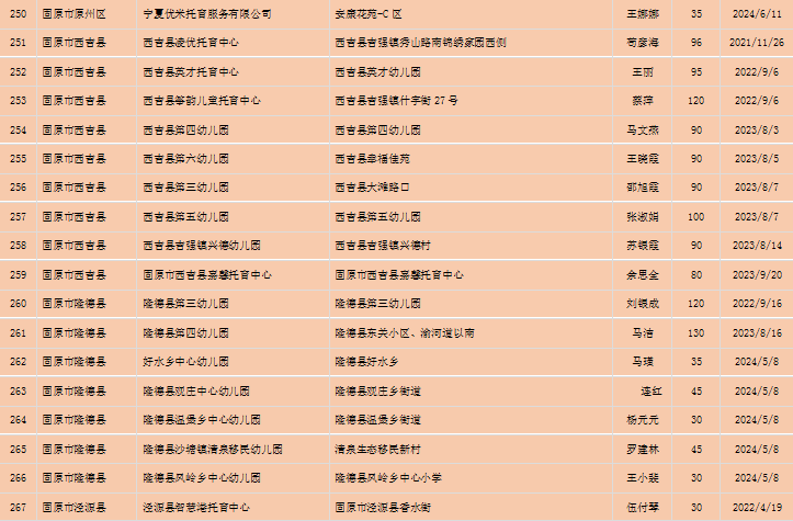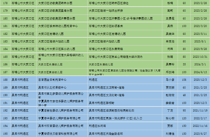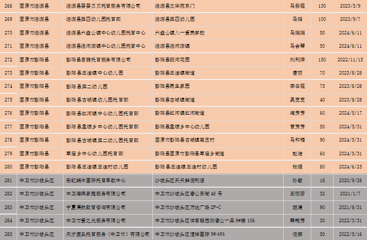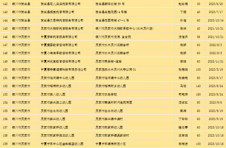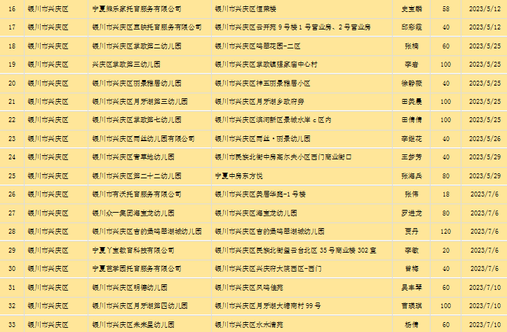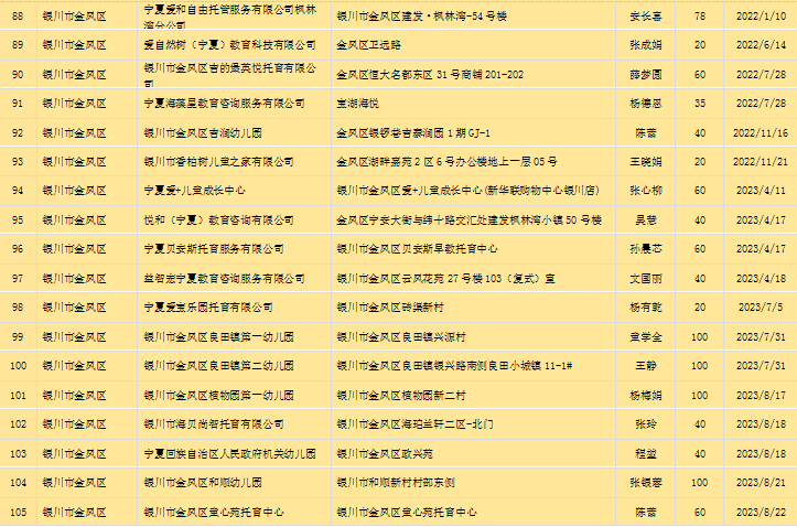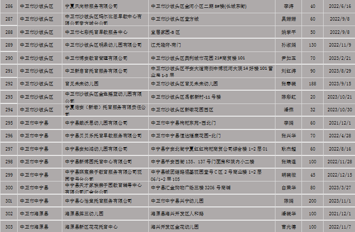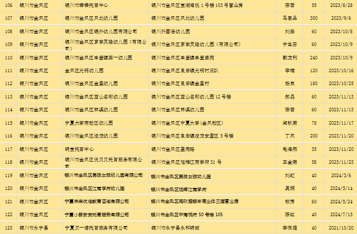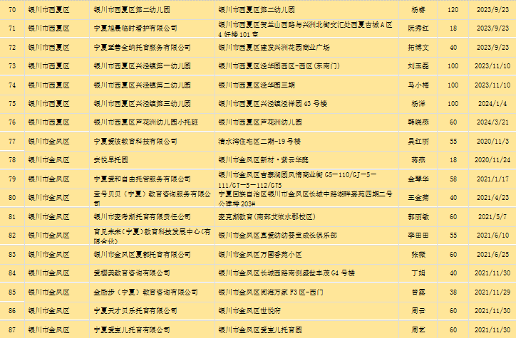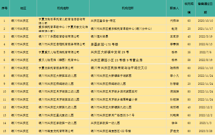 宁夏回族自治区备案托育机构信息公开