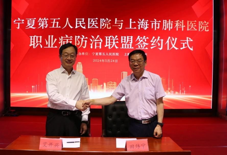 学术交流会上,上海市职业病防治院(上海市肺科医院)的院长艾开兴与自治区第五人民医院院长田炜宁现场签署了继续合作协议,并就推进协议内容落实落地沟通了意见。上海市职业病防治院将不定期到自治区第五人民医院进行医疗技术、学科建设、科研教学、人才建设等方面的指导和培训,旨在共同加强职业健康建设,促进职业病防治诊疗技术协作的深入开展,为当地百姓造福。