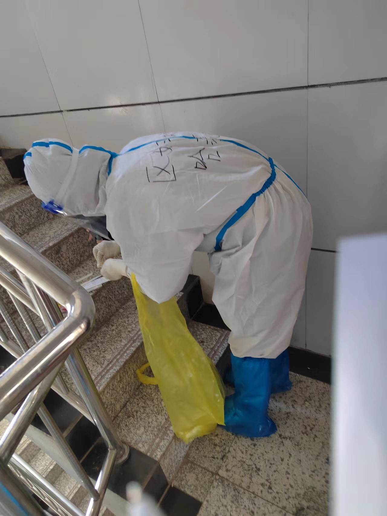 为了配合隔离点政策,每天夜里十一点开始穿防护服,十二点开始采集核酸,确保凌晨六点按时封箱。身穿隔离服正常走路都感到呼吸困难,全部工作需要爬楼梯入户,有时一干就是四五个甚至七八个小时,贴身衣物都被汗水浸透了,虽然精疲力尽,还要认真填报各种信息,不敢有一丝懈怠。